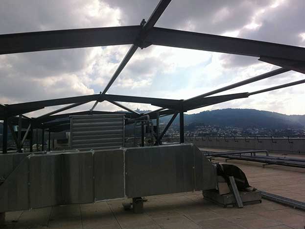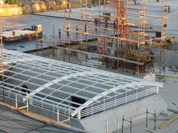 ESTRUTURAS DAS MÁQUINAS AVAC E FORRAMENTO DAS FACHADAS. PROJETO: GINESTAL MACHADO, ARQ....